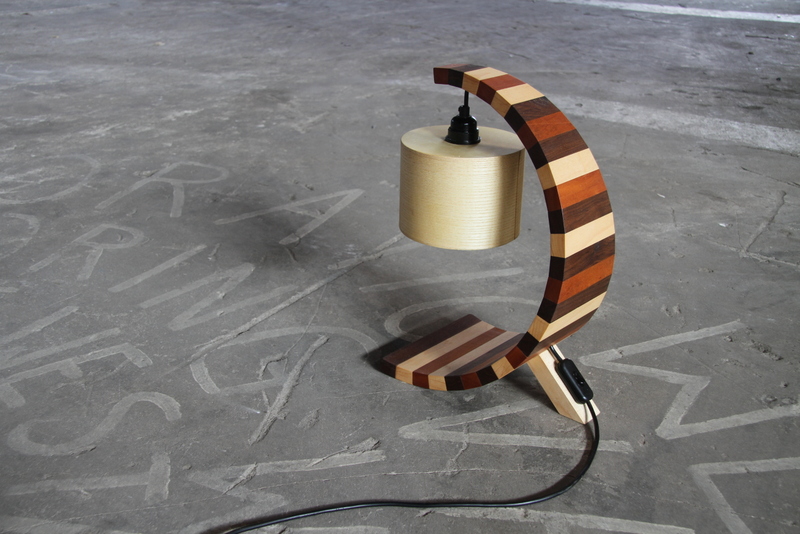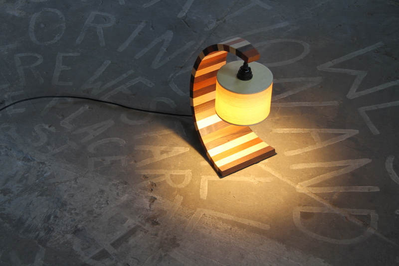 De basis voor deze handgemaakte lamp is de gebogen vorm van de standaard,
