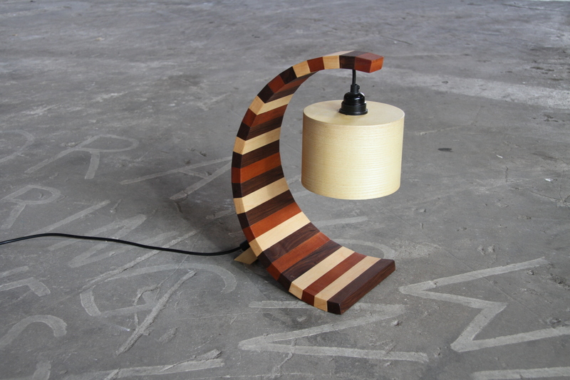 Deze drie houtsoorten vormen een kleurpatroon, dat de lamp haar unieke karakter geeft.